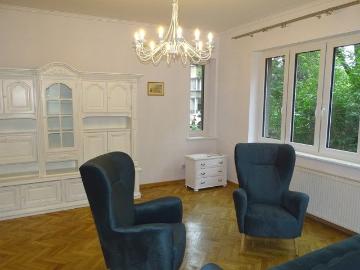 BIELSKO - CENTRUM - rej.ul. Boh.Warszawy - bardzo dobra lokalizacja. Mieszkanie 3-pokojowe o pow.95mkw bez balkonu na parterze w 3-piętrowej kamienicy. Do mieszkania przynależy piwnica i garaż oraz miejsce postojowe przed garażem. Garaż znajduje się na terenie bezpośrednio przylegającej do kamienicy ogrodzonej działki z bramą wjazdową automatycznie otwieraną na pilota. CENA NAJMU GARAŻU: 200zł/m-c STAN MIESZKANIA: mieszkanie jest po remoncie, dobry standard wykończenia. ROZKŁAD: duży przedpokój, 3 pokoje, oddzielna kuchnia, łazienka z wc, garderoba. UMEBLOWANIE: mieszkanie całkowicie umeblowane. OPŁATY: -CENA NAJMU MIESZKANIA: 2500zł/m-c + opłaty + kaucja (dwumiesięczna), - CENA NAJMU GARAŻU: 200zł/m-c - opłata do Wspólnoty Mieszk. 660zł/m-c ( w tym m.in. zaliczka na wodę, wywóz śmieci, utrzymanie części wspólnych) - opłaty - prąd, woda, gaz - wg liczników. DANE DODATKOWE: - podłogi - pokoje i przedpokój - parkiet, kuchnia - kafelki, - okna - drewniane skrzynkowe, - ściany malowane, -