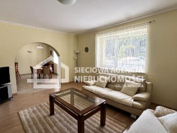 Dom rodzinny z widokiem na zieleń - Gdynia, Wielki Kack LOKALIZACJA Nieruchomość położona jest w spokojnej, kameralnej dzielnicy domów jednorodzinnych w Gdyni, na Wielkim Kacku, przy cichej, ślepej uliczce. W bezpośrednim sąsiedztwie znajdują się tereny zielone, stadnina koni, liczne ścieżki piesze i rowerowe, a także pełna infrastruktura usługowo-handlowa: szkoły podstawowe, przedszkola, żłobki, sklepy oraz punkty usługowe. Dzielnica jest doskonale skomunikowana z resztą Trójmiasta — w pobliżu znajduje się węzeł drogowy Wielki Kack oraz obwodnica Trójmiasta z szybkim dojazdem do lotniska w Rębiechowie. Lokalizacja zapewnia jednocześnie wygodę miejskiego życia i poczucie prywatności, ciszy oraz bliskość natury. NIERUCHOMOŚĆ Dwukondygnacyjny dom w zabudowie bliźniaczej o powierzchni użytkowej 145 m². Dom przeszedł remont elewacji w 2024. Na parterze znajdują się: przestronny salon z tradycyjnym kominkiem z funkcją ogrzewania domu i wody, otwarta, w pełni wyposażona kuchnia (sprzęt AGD),